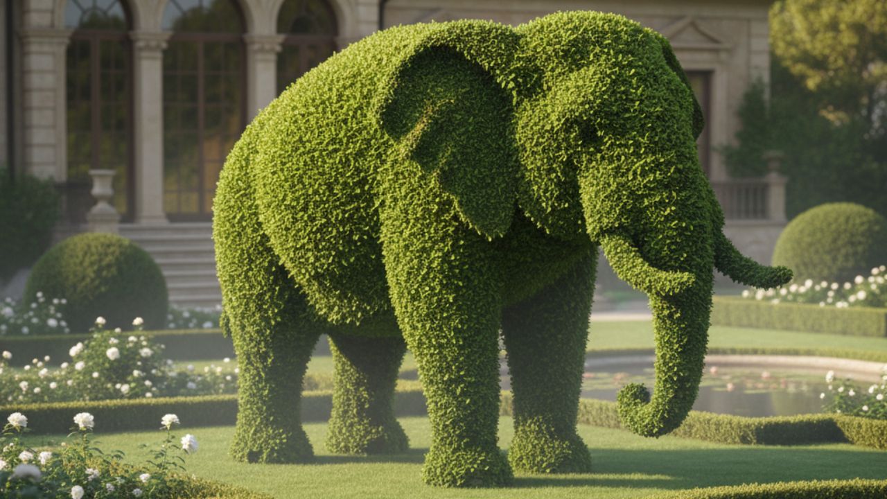 Com o passar do tempo, essas referências deixam de ser necessárias, e a planta passa a responder apenas aos cortes regulares. Mesmo após atingir o desenho desejado, a topiária nunca está “finalizada”. Ela exige manutenção constante para preservar suas linhas e impedir que o crescimento natural descaracterize o formato.