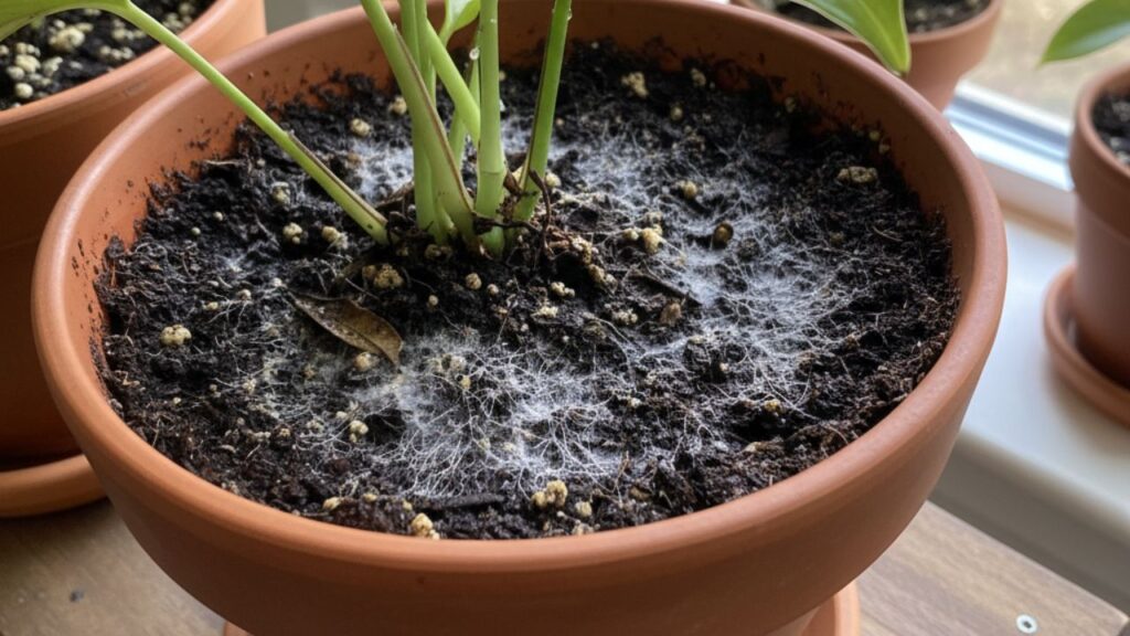 Quem cultiva plantas em casa já se deparou com uma cena inquietante: uma camada branca surgindo na superfície da terra, alterando a textura do substrato e levantando dúvidas sobre a saúde da planta. À primeira vista, o problema parece grave, mas na maioria dos casos não está na espécie em si — e sim no ambiente criado ao redor dela. Esse sinal silencioso costuma indicar a presença de fungos na terra do vaso, resultado direto de um desequilíbrio entre água, ventilação e drenagem.